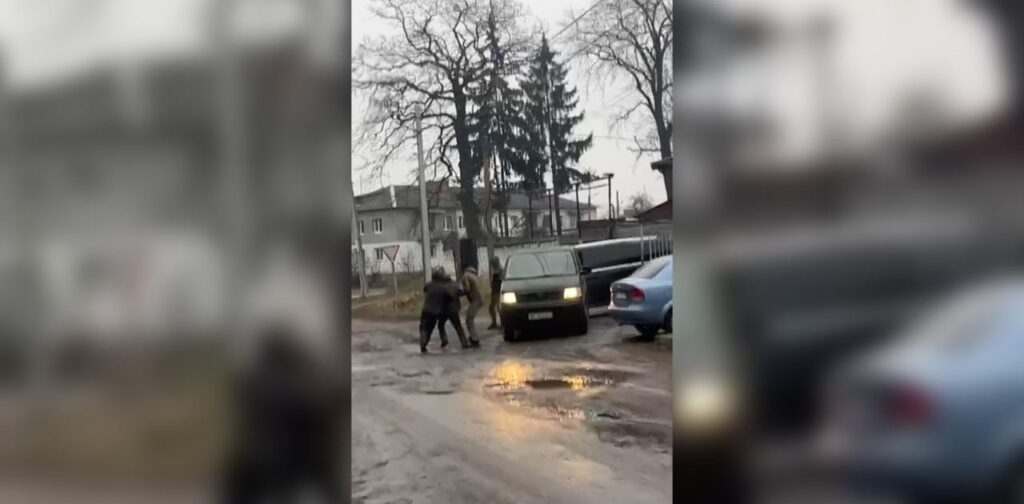 На кадрах видно, як представники територіального центру комплектування (ТЦК) без пояснень та силою посадили молодого чоловіка в мікроавтобус.