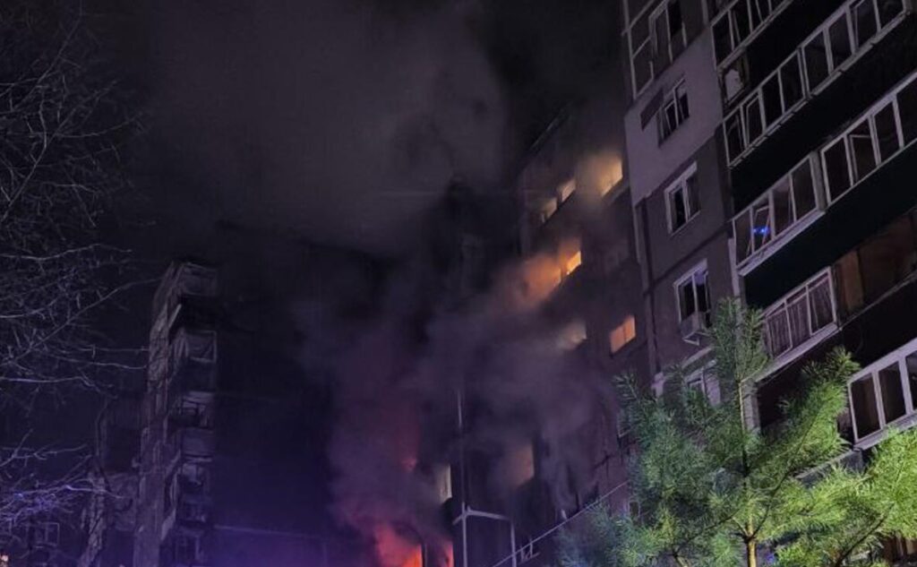 Повідомляють, що від обстрілу постраждали 24 багатоквартирні будинки, у деяких почалася пожежа. Також дрони влучили в гараж швидкої допомоги, пошкоджень зазнали 11 машин.