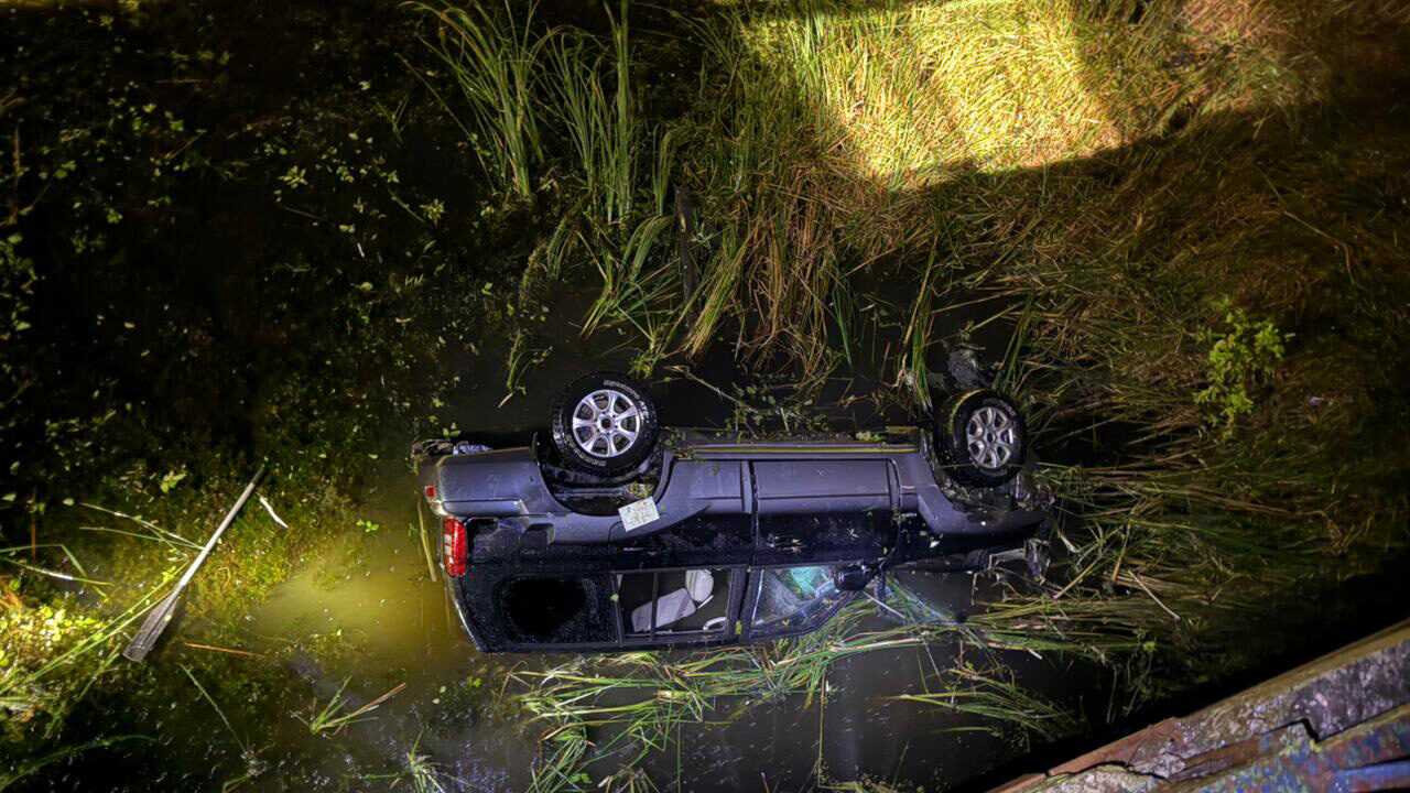 На в’їзді в один із населених пунктів Полтавського району під час погоні водій перевищив швидкість, втратив контроль над автомобілем, виїхав за межі проїжджої частини та перекинувся у водойму.