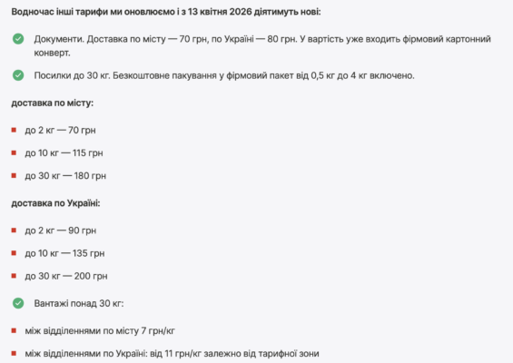 “Нова пошта”, яка планує масштабне розширення у 2026 році, повідомила про підвищення тарифів більш ніж на 10% з 13 квітня.